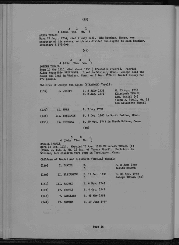 Thrall Genealogy 1630-1965