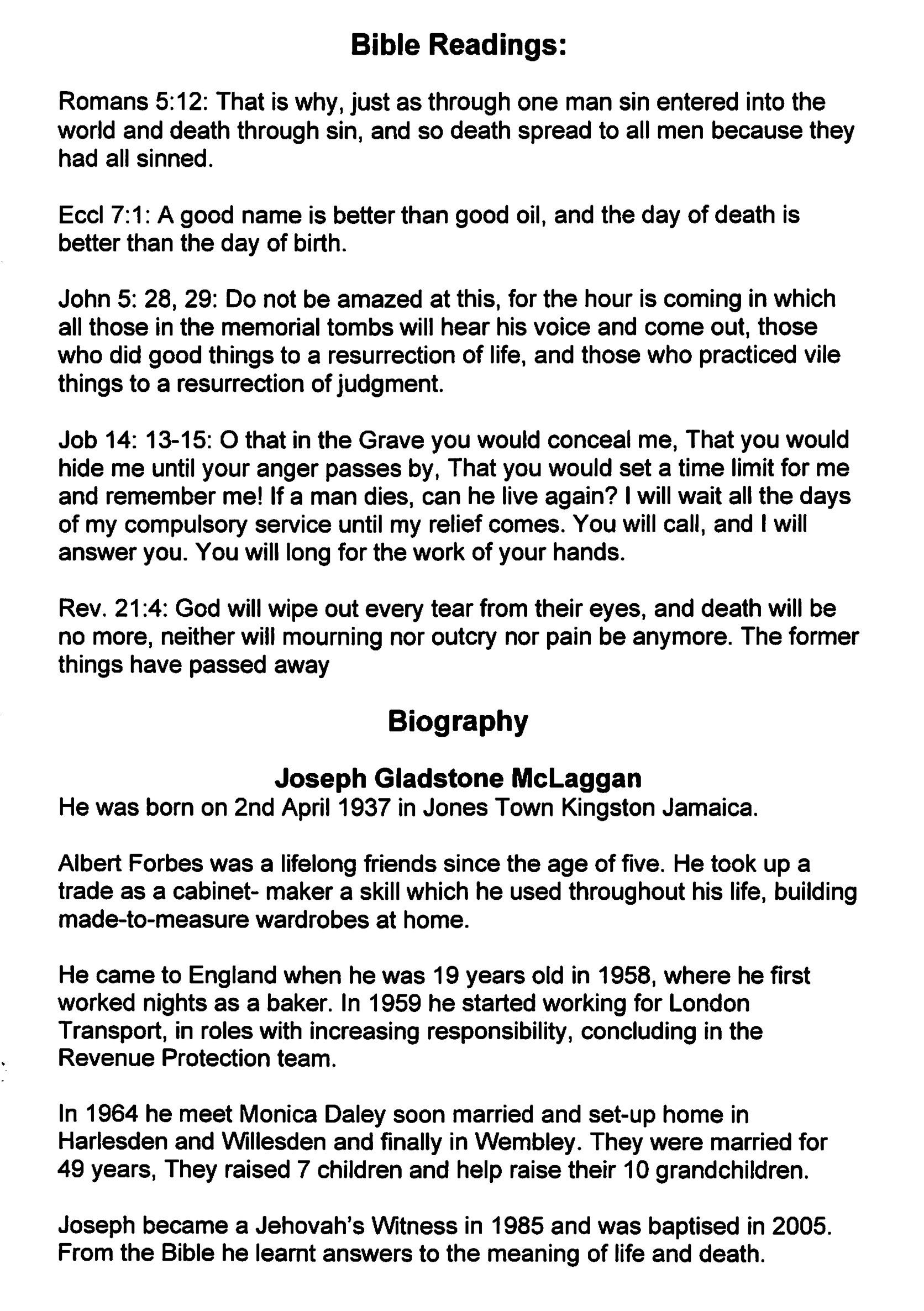 | Download PDF | Joseph Gladstone MCLAGGAN, Memorial booklet |