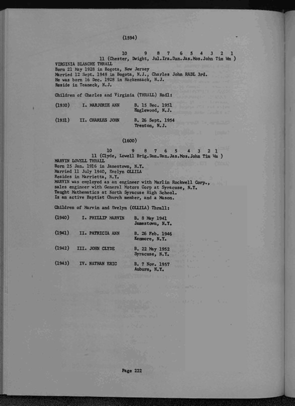 Thrall Genealogy 1630-1965