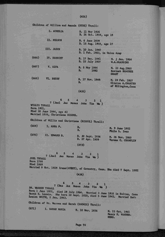 Thrall Genealogy 1630-1965