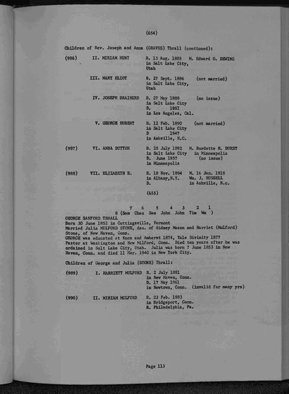 Thrall Genealogy 1630-1965