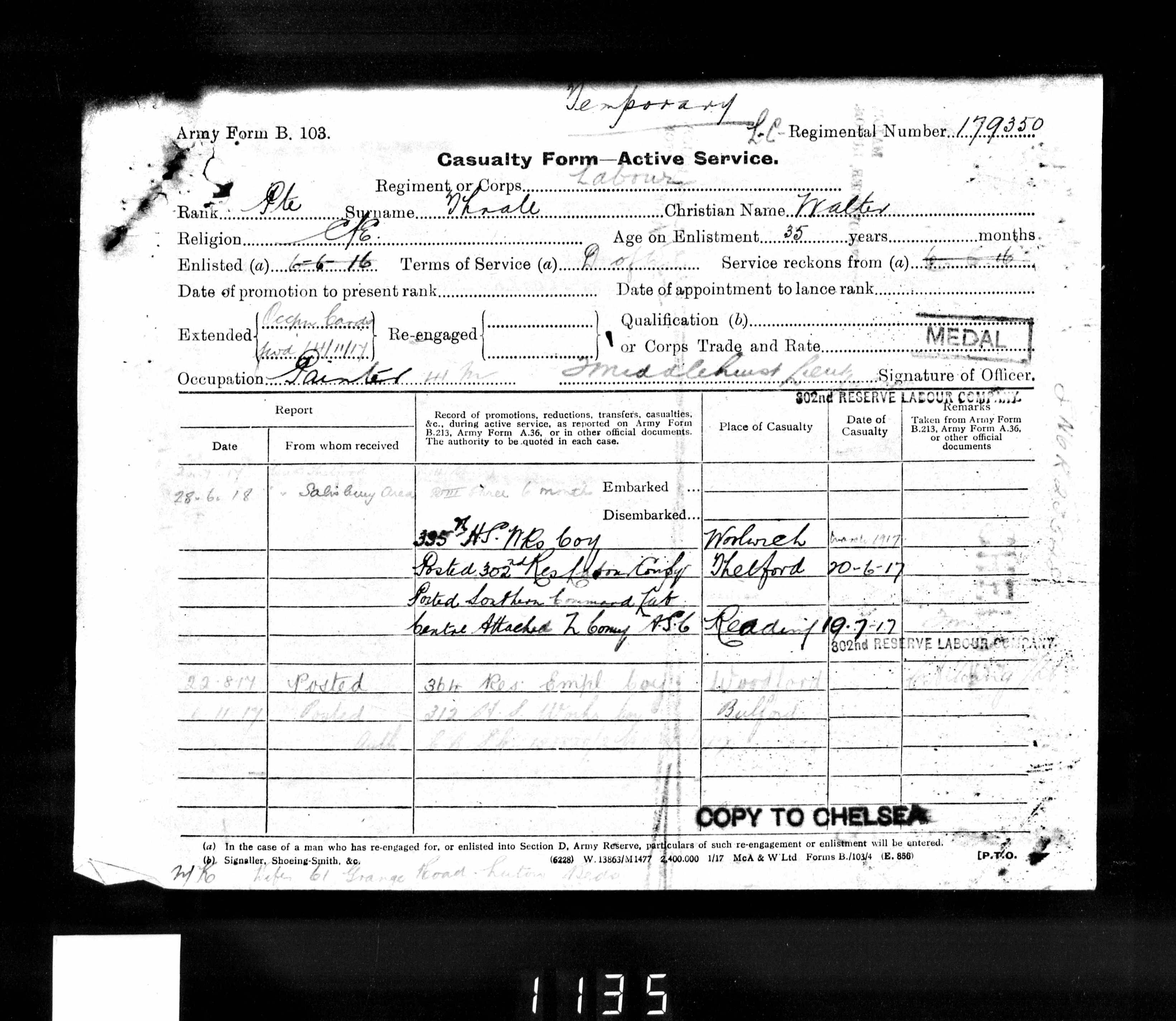 Walter THRALE. Military record.