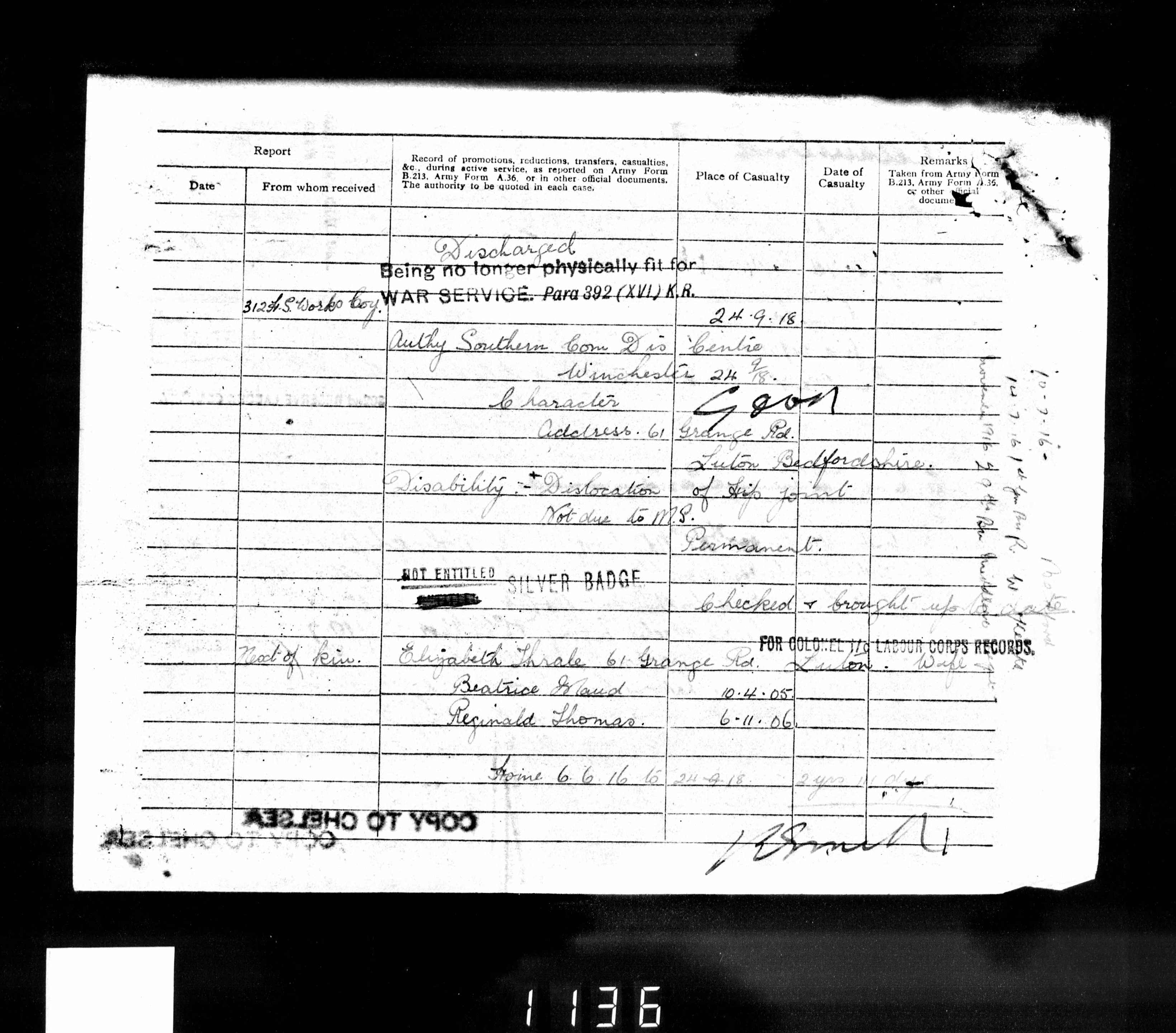 Walter THRALE. Military record.