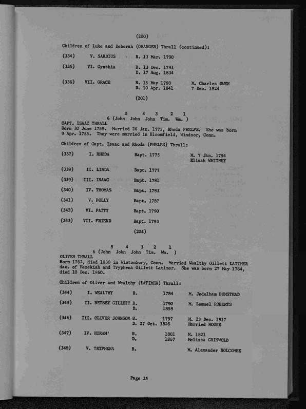 Thrall Genealogy 1630-1965