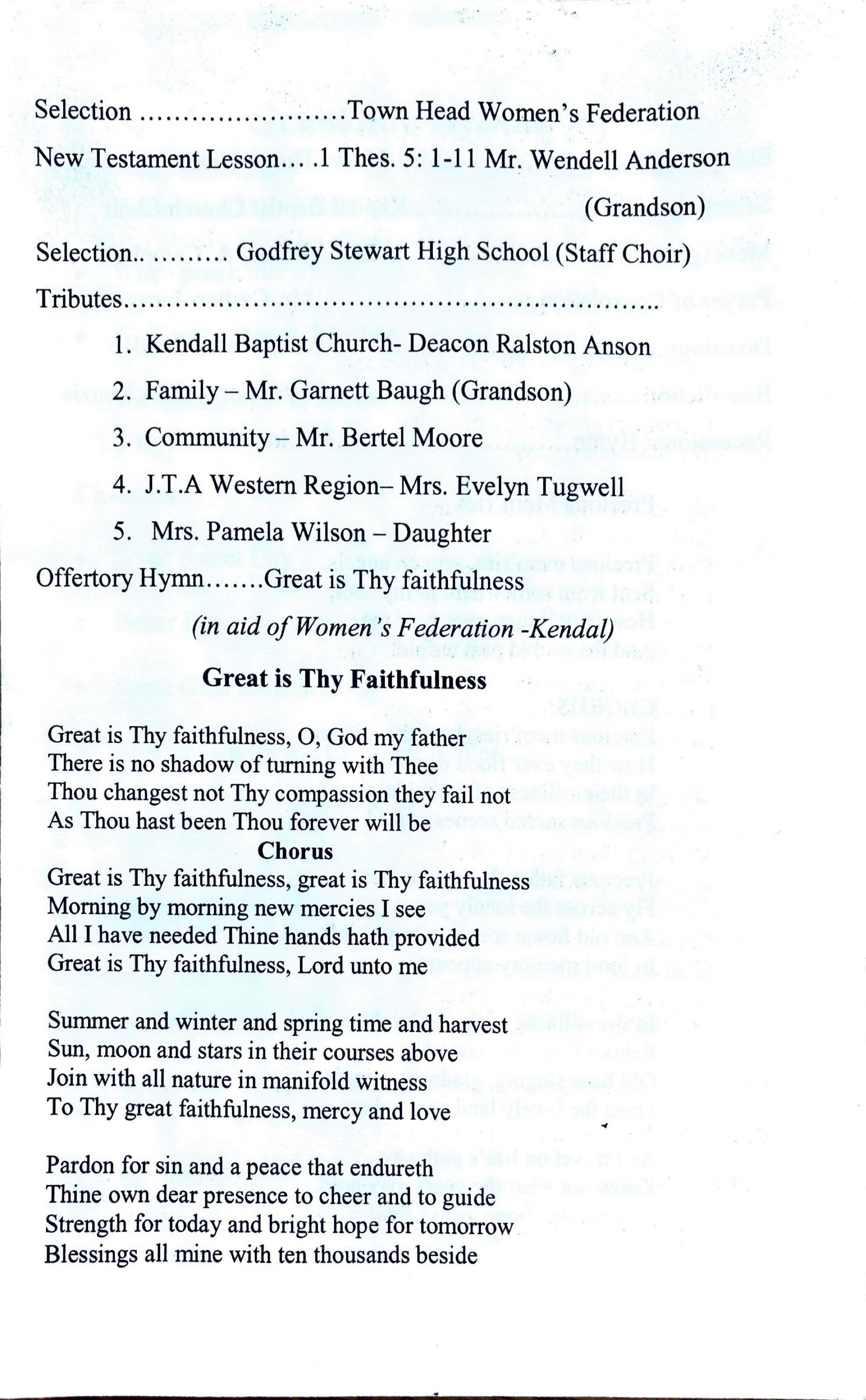 Offertory Hymn: Great is Thy faithfulness