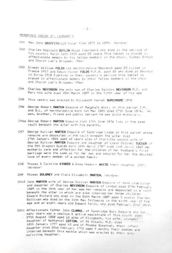| Linked to | SAINT LEONARDS CHURCH, SANDRIDGE, HERTFORDSHIRE, ENGLAND; Monumental inscriptions - the parish church of St Leonard 1990 |